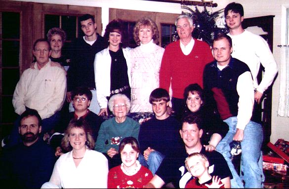 Here's is a picture of (from left to rt) me, my sister Robin who lives in Union S.C. (yes..home of Susan Smith the child killer) my grandmother, my sister Susan who lives in Birmingham Al, and my cousin Kathy. This is another of most of my family during Christmas of 1996. My grandmother is no longer with us. She left this world a few years ago to be with my grand dad in Heaven. I miss them both very very much! I love you grand mother and grand dad!!