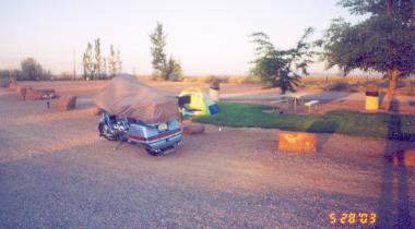 The next morning I was loading my bags of clothes (one in my trunk and one on top on the luggage rack) on my bike when a Deputy Sheriff on a motorcycle (a Harley) pulled up behind my Wing and was looking at it. We talked for about 15 minutes about my trip and what all I had done to that point and where I was going. I asked him where folks with motorcycles out that way go to have a good ride.