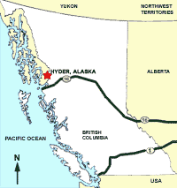 Also, the roads go nowhere! You cannot go further than Hyder. One way in and one way out. Population is 100 in winter. 131 in summer. There was no Customs to go through into Hyder Alaska, but to go back into Stewart B.C, you had to go through one. Go figure! By the way, Stewart B.C is where John Carpenter filmed the movie "The Thing".