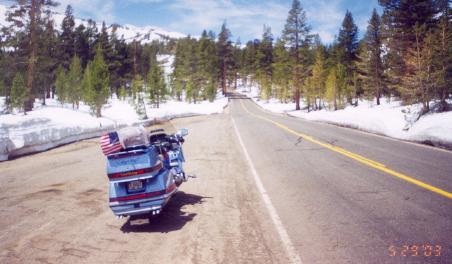 I will tell you now that those hiways were a bikers dream. Plenty of twists and dips. I even had to turn around one time and do some of them again it was so much fun. In some areas, I was up in the snow covered mountains with snow all around me yet the temps were still in the lower 60's. Much better than the 100's I was in the day before.