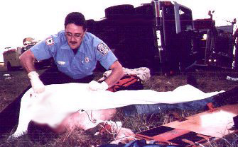 It was a one vehicle accident involving a full size van loaded with people. Some were young children. None had their seat belts on and ALL were ejected when the van flipped. (The top came off) I cant really go into all the details now, but all went to hospital. All were hurt very bad. The van landed upright on top of one of them and they died at the scene.