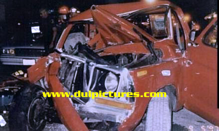 2ND AND BOTTOM PHOTO: the driver was removed from the wreck and survived it relatively unscathed; a broken thumb and minor lacerations. An overnight stay in the hospitol (for observation purposes) - flirting with the nurses; laughing, enjoying life, ... the driver was released from medical treatment the next morning.